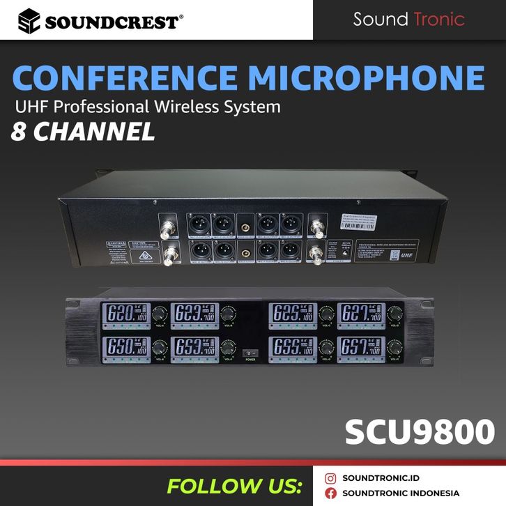 Mic Meeting 8 Channel Wireless Soundcrest SCU9800 Conference UHF
