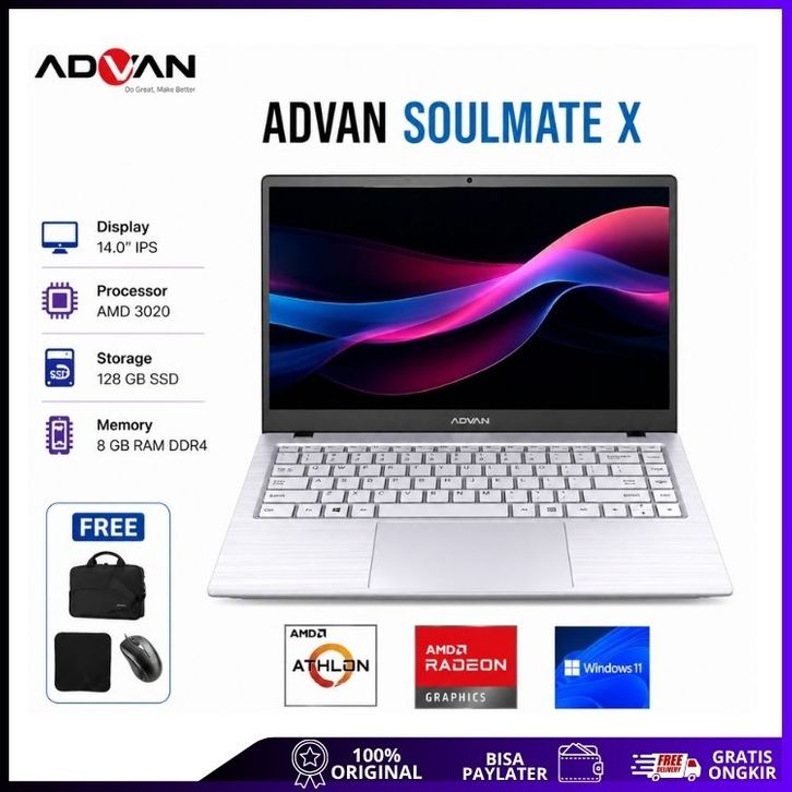 LAPTOP ADVAN SOULMATE X AMD ATHLON 3020E RAM 16GB SSD 512 WIN 11 ORIGINAL BARU BERGARANSI DAN SIAP PAKAI
