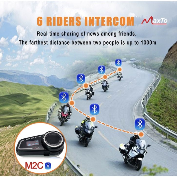 Maxto M2C Bluetooth Radio Intercom Helm 6 Rider Alt M2 M3 EJEAS Q7 V6 PRO