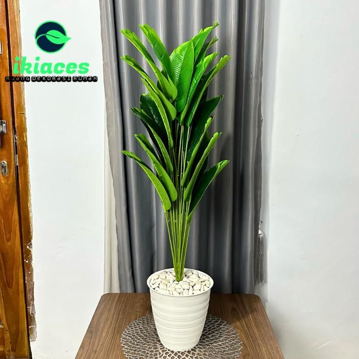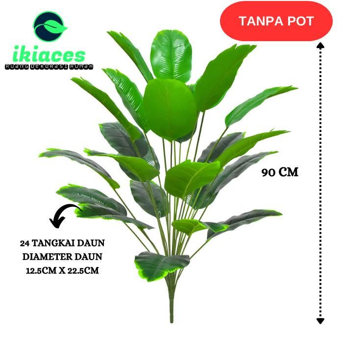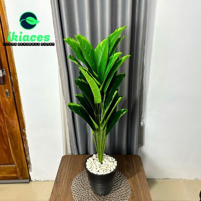 DAUN PISANG JUMBO ARTIFICIAL DAUN PLASTIK HIAS 1 METER DEKORASI RUMAH - POT HITAM