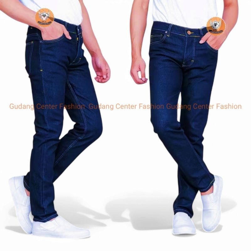 (Gratis Ongkir) Celana Jeans pria slim fit cowok pensil denim panjang skiny Stretch bagus tebal Biru muda Hitam dongker