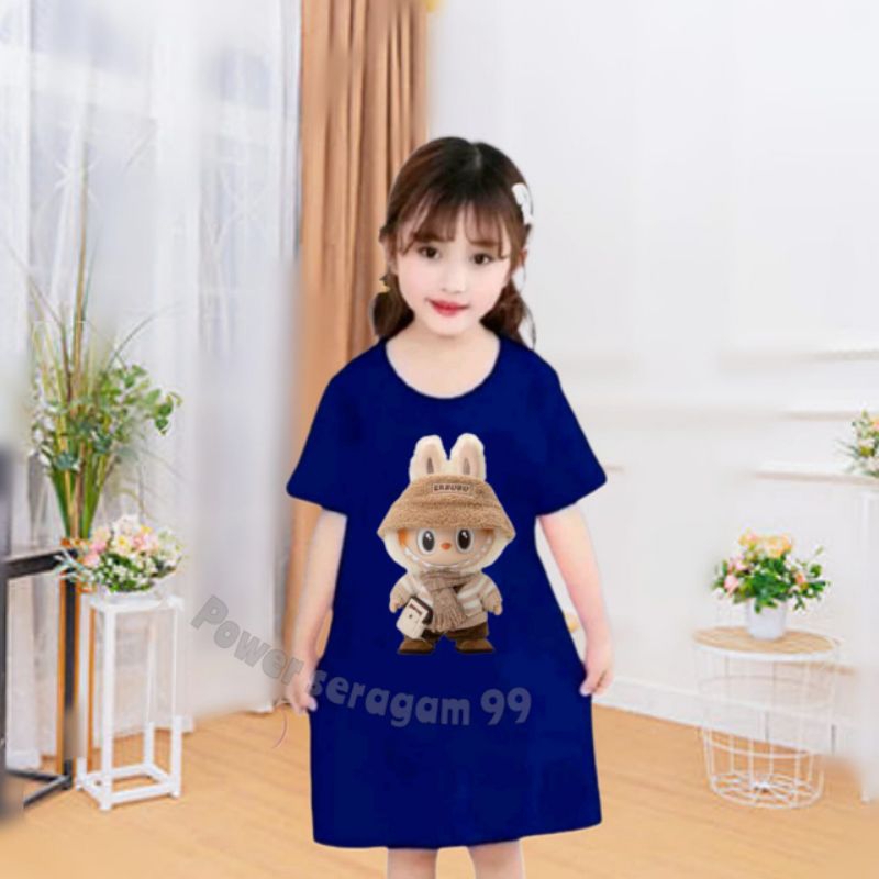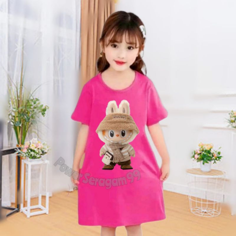 Daster LABUBU Anak perempuan Usia 1-13 Tahun Bahan Katun / Daster Rumahan Anak Perempuan / Daster Anak Lengan Pendek
