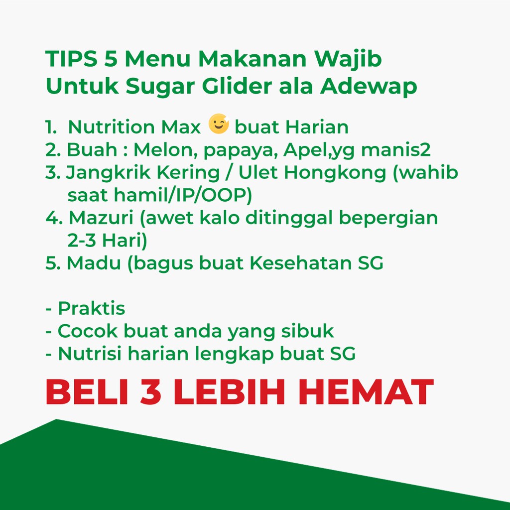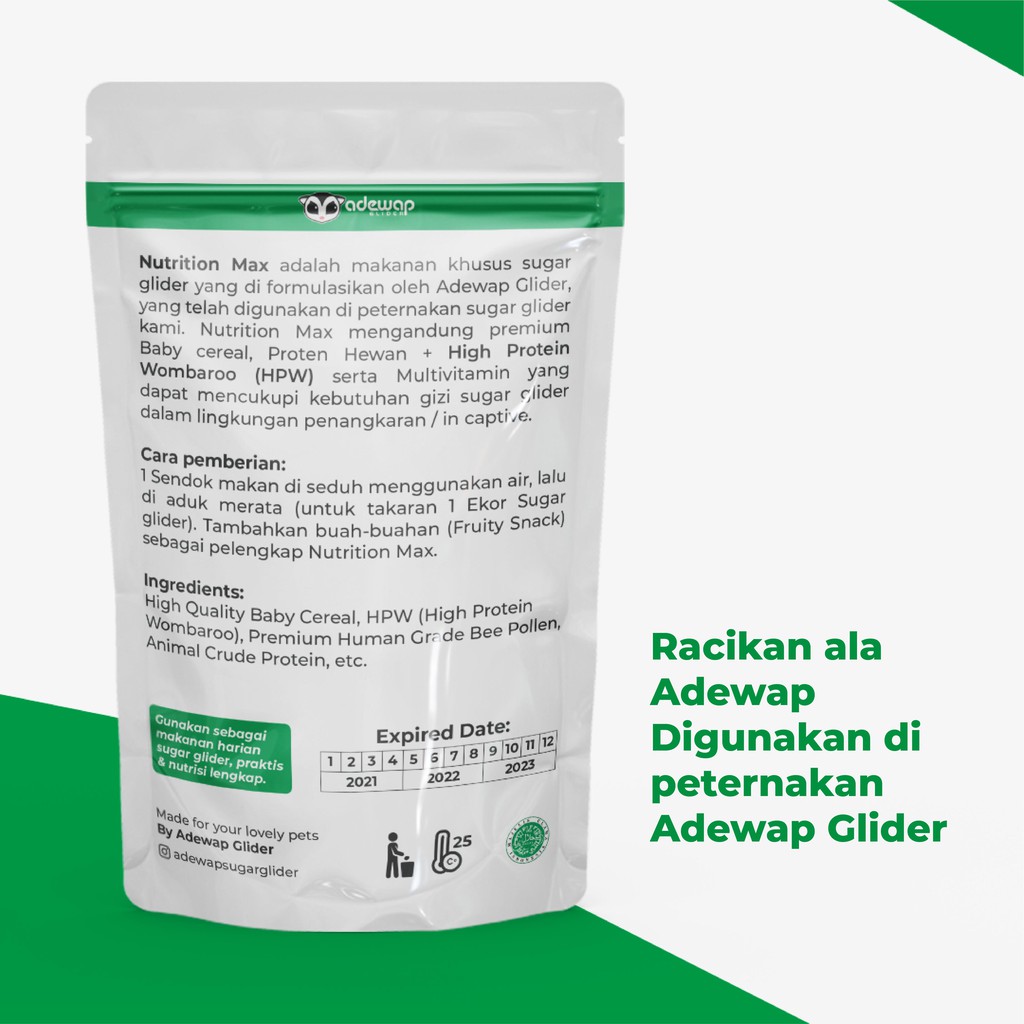 Makanan Bubur Sugar Glider Nutrition Max Premix Protein Kalsium Daily Meal Pet Shop Payou