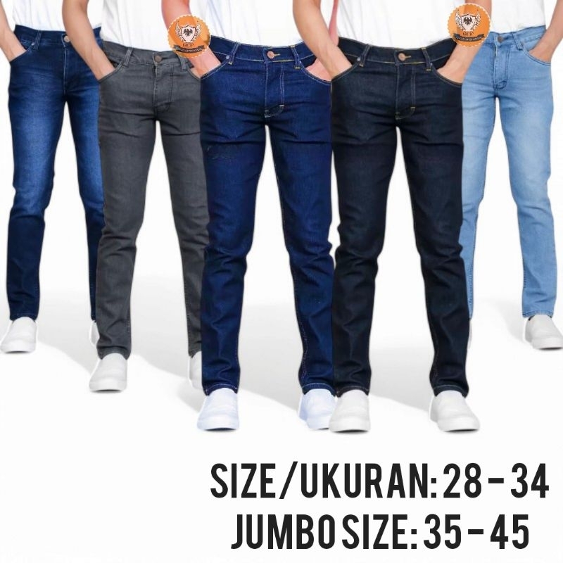 (Gratis Ongkir) Celana Jeans pria slim fit cowok pensil denim panjang skiny Stretch bagus tebal Biru muda Hitam dongker