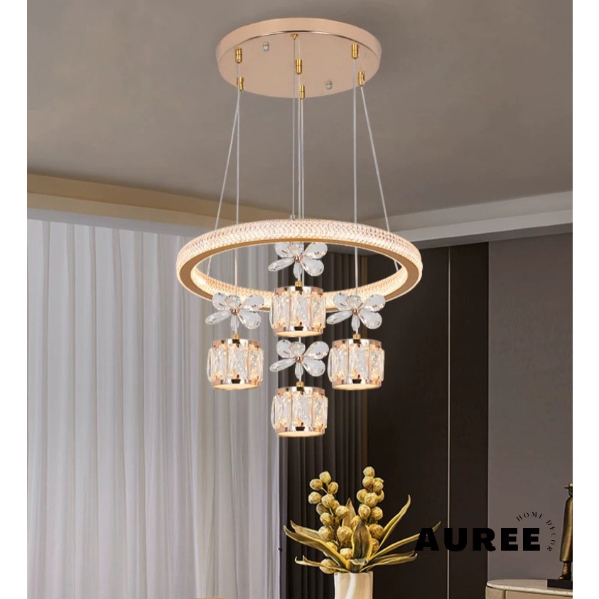 [Star] LAMPU GANTUNG RUANG TAMU / LAMPU GANTUNG MINIMALIS / LAMPU GANTUNG KRISTAL KACA LED 3 WARNA MODERN