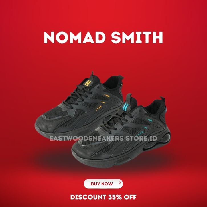 Nomad Smith Sepatu Sekolah Sneakers Casual S30 Hitam Karet Black Shoes Pria Snekers Kasual Running