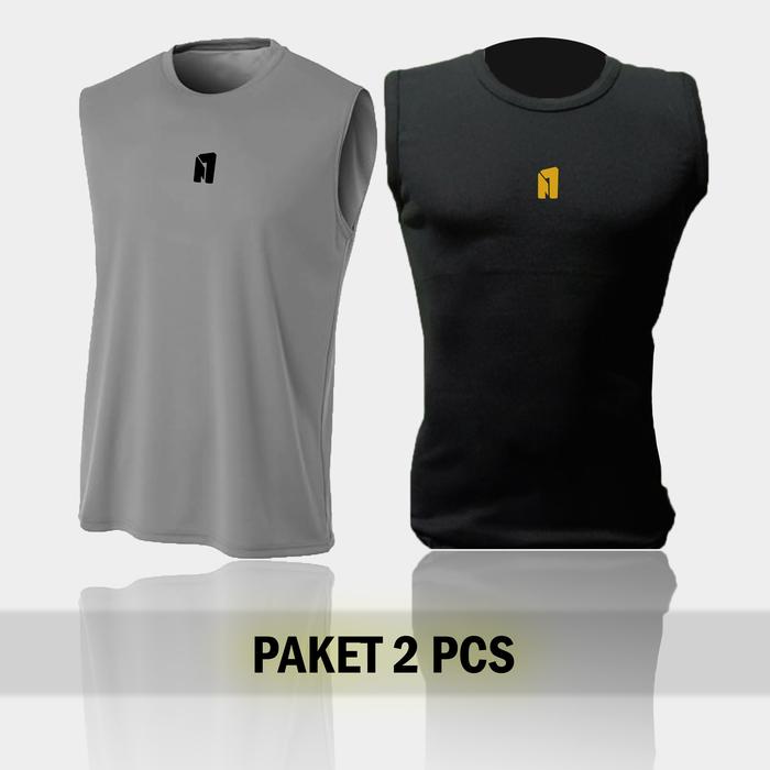 Paket 2 pcs Baselayer Kaos Singlet Pria Wanita Olahraga Gym Sepeda Lari Cepat Kering Outdoor Sport