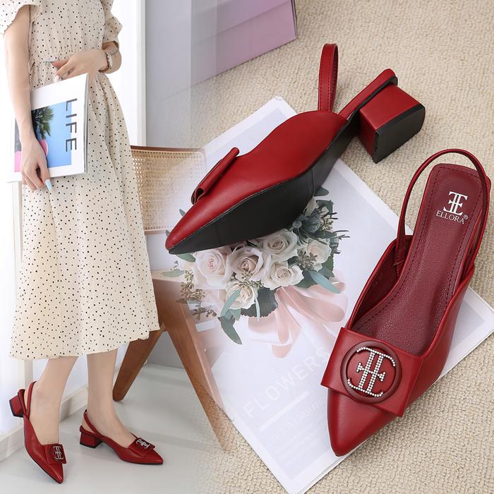 ELLORA EL 684-24 Sepatu Wanita Hak Chunky Heels 4cm Slingback Import maroon flat pansus tali