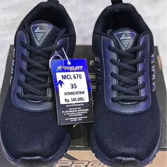 sepatu sekolah pro att size 35-43 tali hitam hitm MCL 670 terbaru murah meriah sneakers anak Fashion