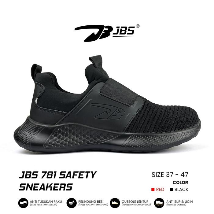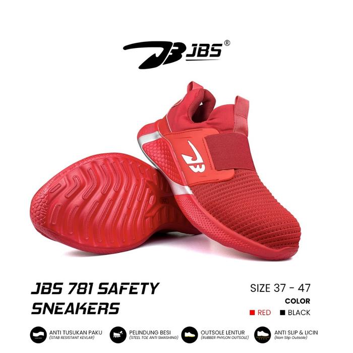 Sepatu Safety Sneakers JBS 781 Slip On with Steel Toe Black Merah Casual Shoes Pria