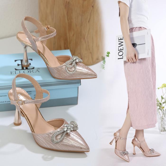 ELLORA ED-7729 Sepatu Heels Pesta Wanita Ankle Strap 10cm Import