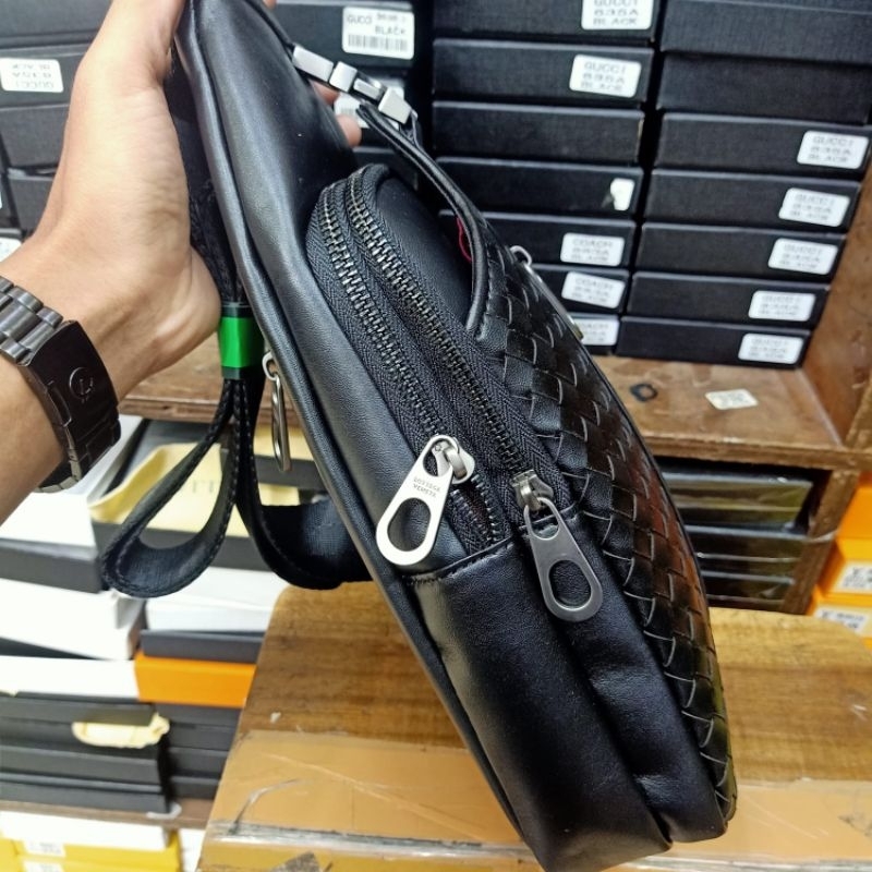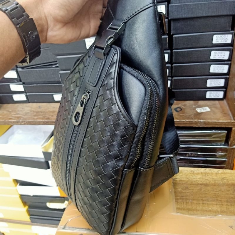 TAS SELEMPANG SLINGBAG KULIT BONTEGA MOTIF ANYAMAN BODYBAG TAS SELEMPANG KULIT UNISEX