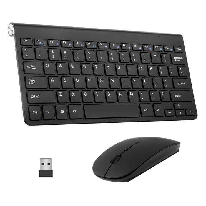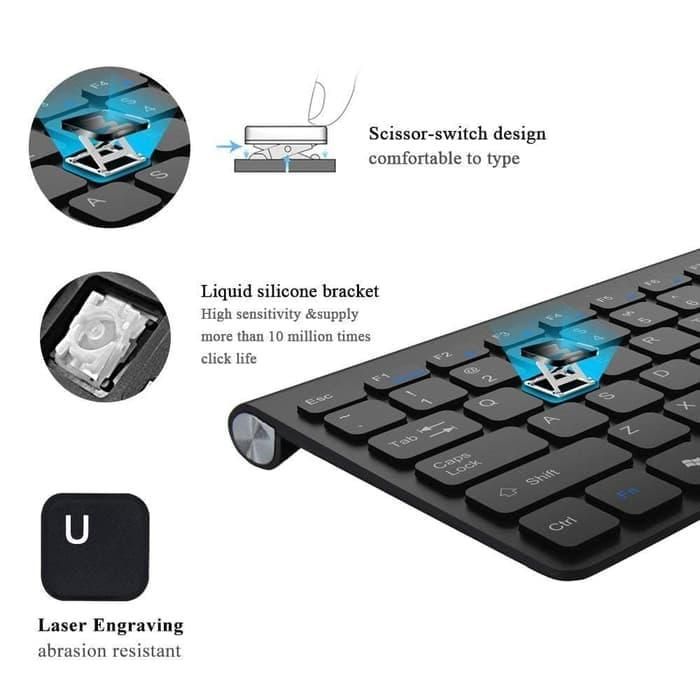 Ultra Slim Wireless Keyboard Multimedia Combo Set with Mouse - hitam