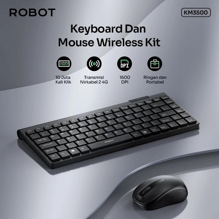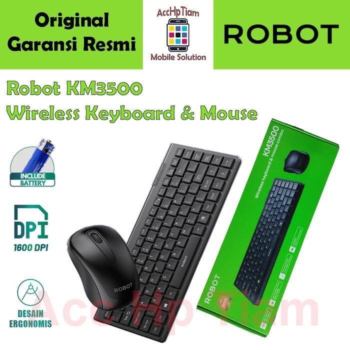 Keyboard & Mouse Robot KM3500 Wireless - Gratis Batu Siap Pakai - Set Combo Mini Portable Original Garansi