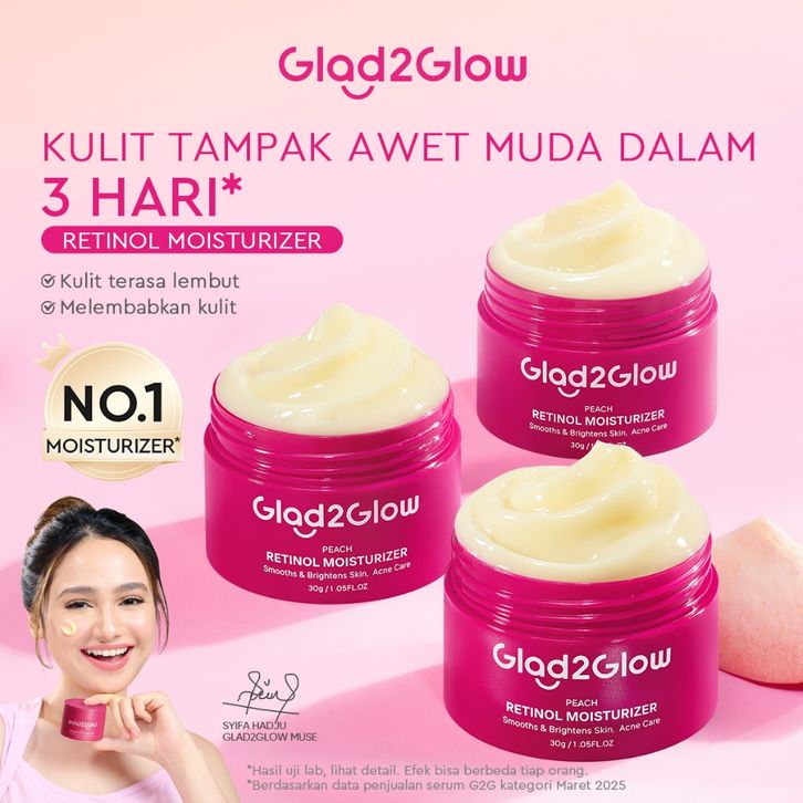 Glad2Glow Peach Retinol Moisturizer Pelembab Anti Penuaan Penghalang Kulit Mencerahkan Flek Hitam Mengurangi kerutan