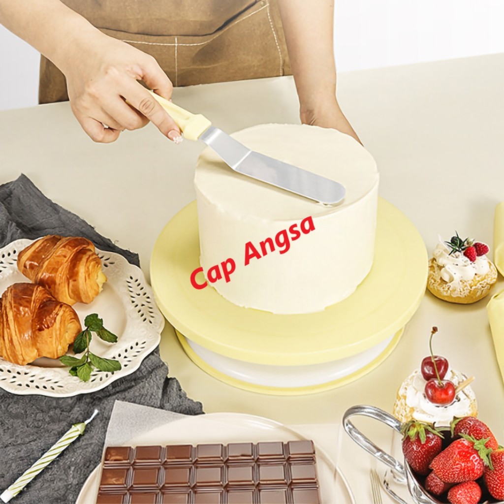 MEJA DEKOR PUTAR ROTATING CAKE TURNTABLE PIRING PLASTIC ROTATING TABLE DISPLAY PENGHIAS BIRTHDAY CAKE