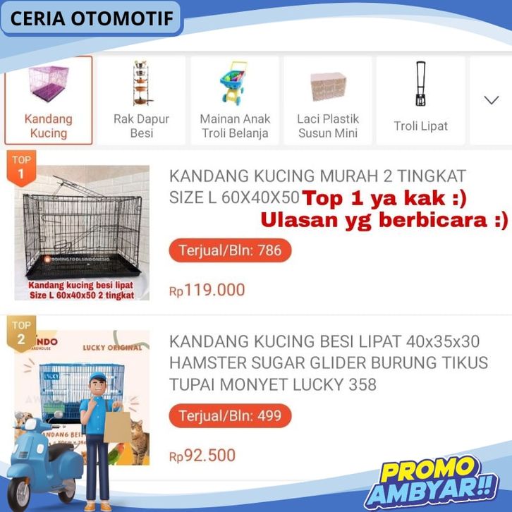 KANDANG KUCING SIZE L (60X40) HIGH QUALITY