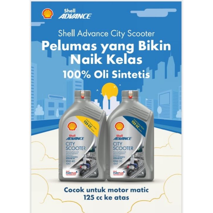 Oli Shell Advance City Scooter Motor Matic Fully Synthetic SAE 10w30/10w40 API SP JASO MB 1 Liter