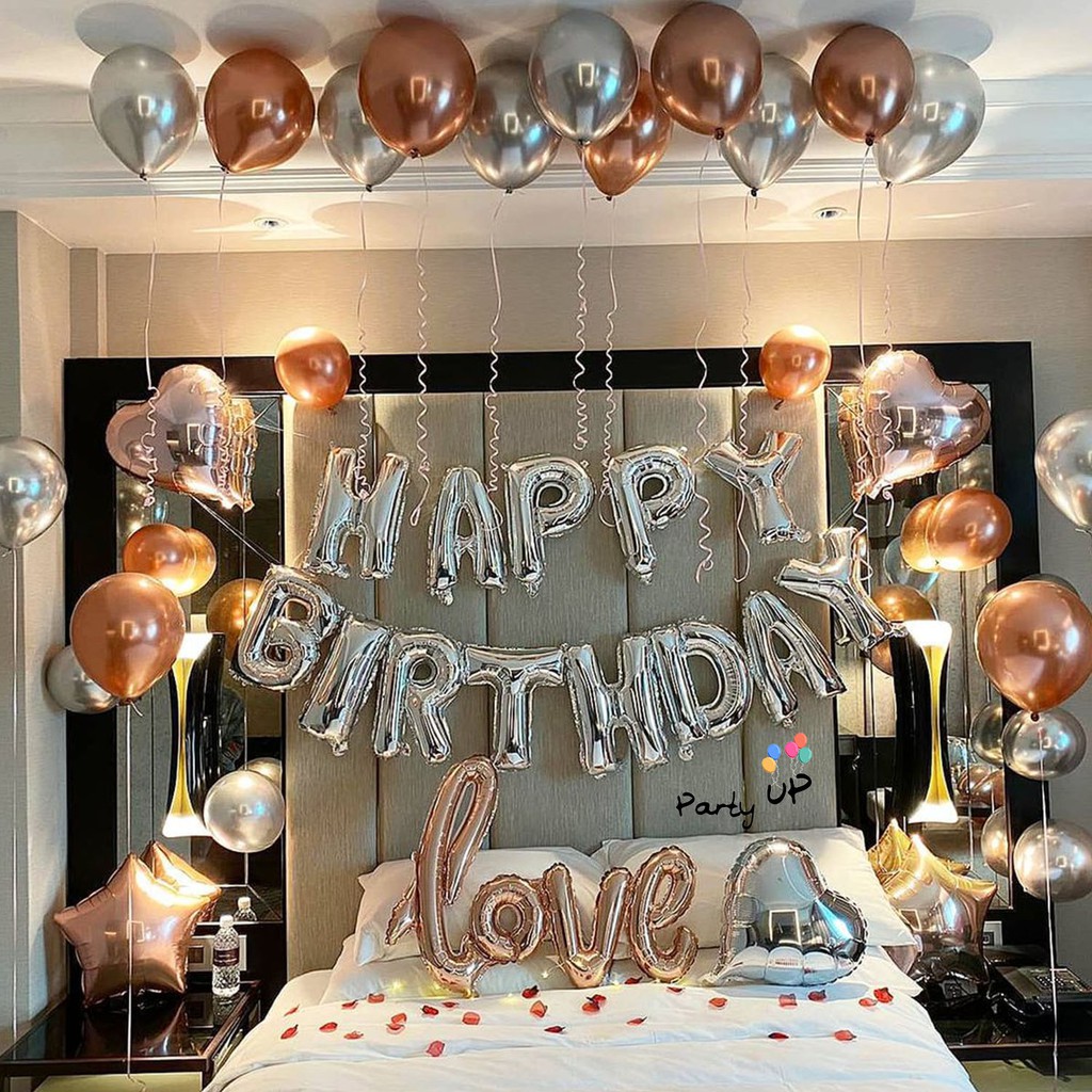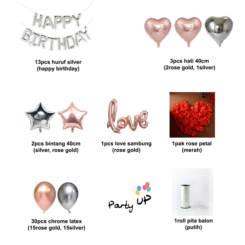 [Paket Romantis] Silver & Rose Gold Happy Birthday Love Decoration