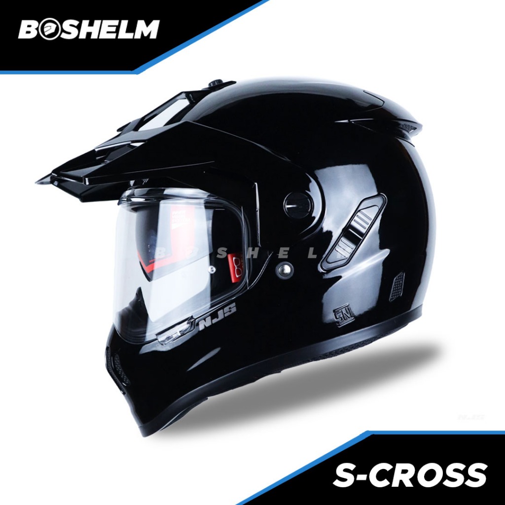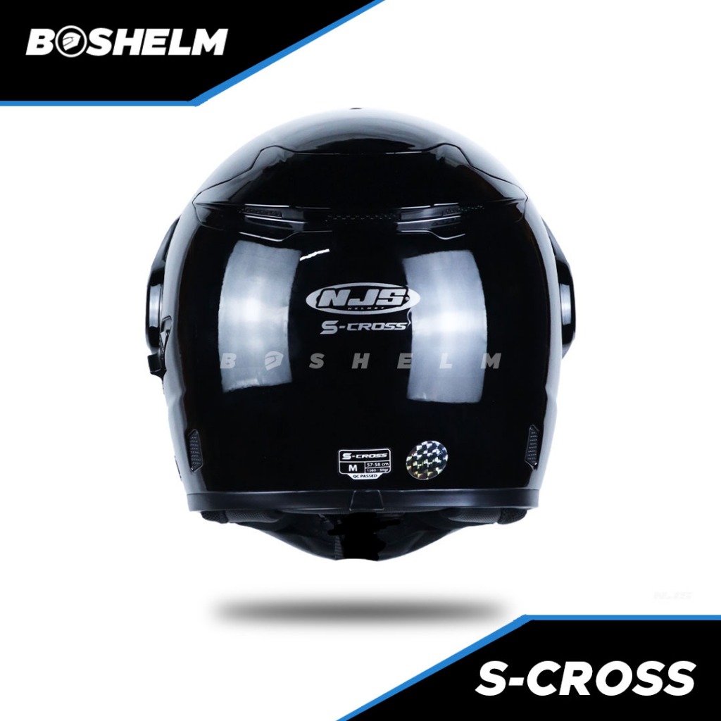 BOSHELM Helm NJS S-Cross Solid HITAM GLOSSY Helm Full Face SNI