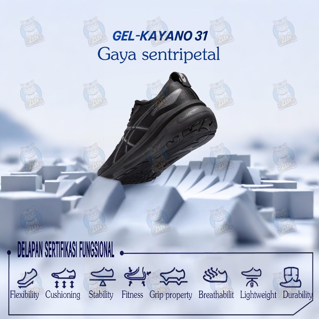 SEPATU RUNNING PRIA ASICS ALL BLACK GEL-KAYAN0 31 COCOK UNTUK OLAHRAGA LUAR RUANGAN SEPATU LARI YANG TRENDY MEMBERIKAN KAUS KAKI