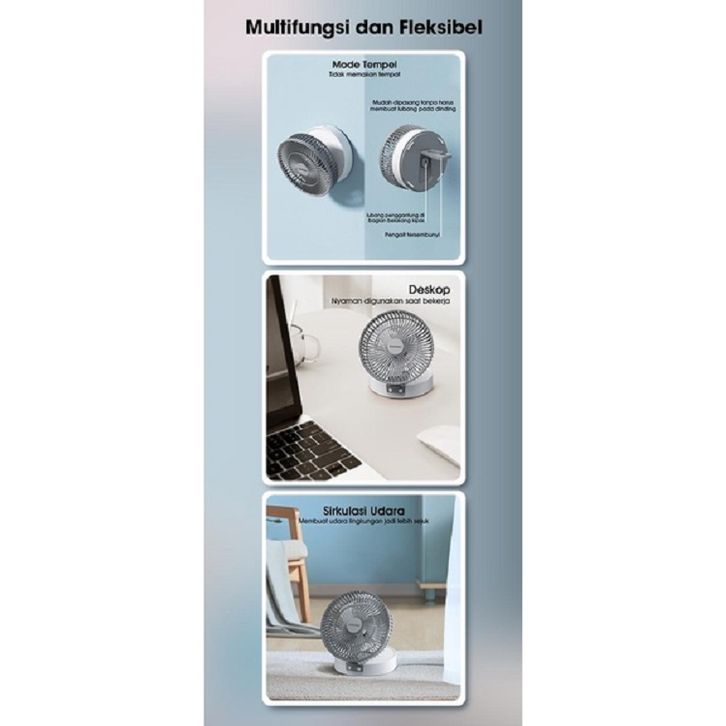 Samono Kipas Multifungsi USB Charge 3 Tingkat Kecepatan Portable Fan Bisa Dilipat Design Ergonomis SW-DF03 Grey