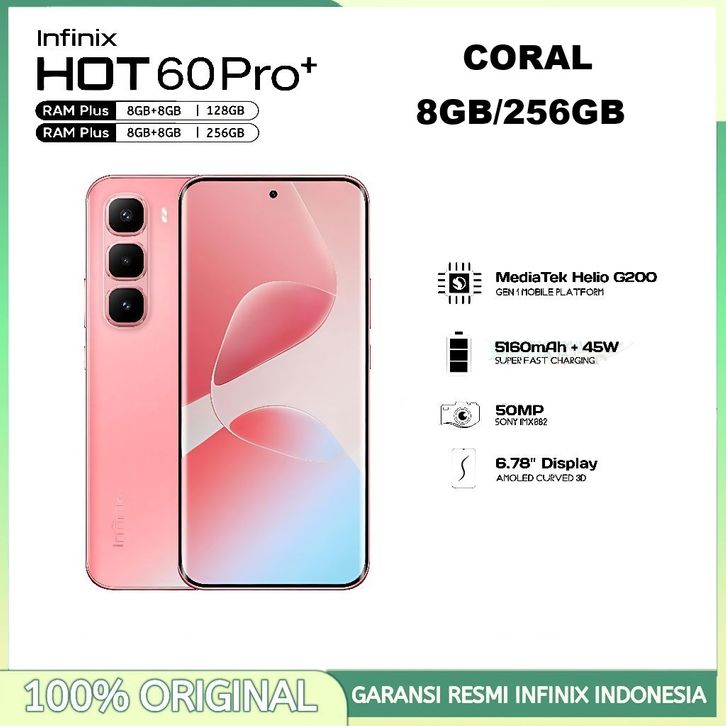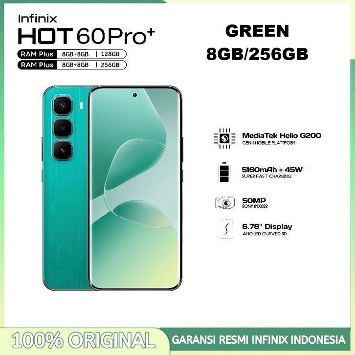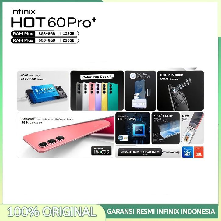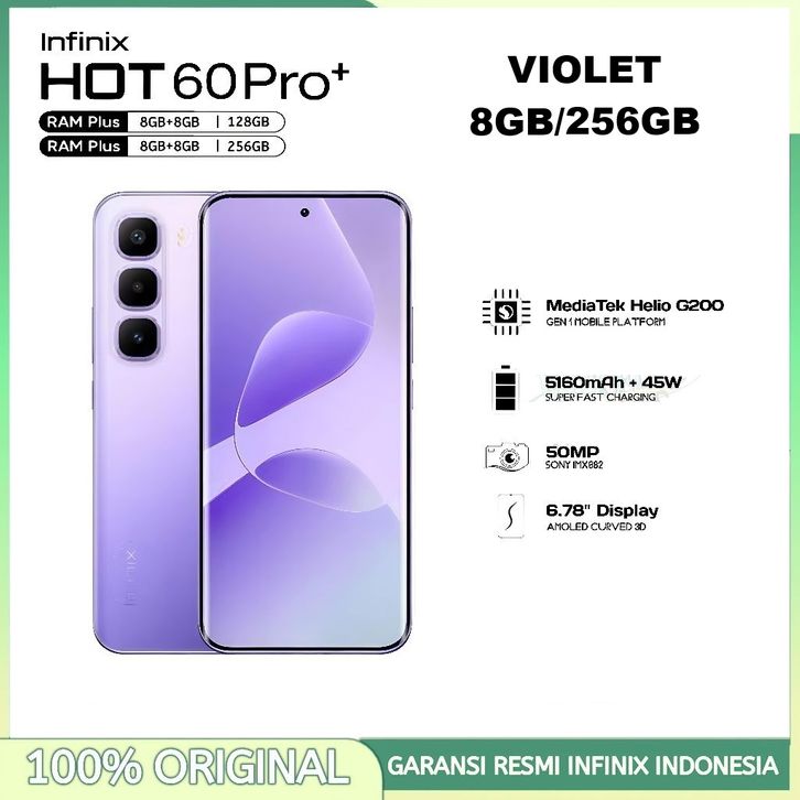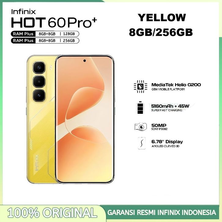 Infinix Hot 60 Pro+ NFC [8/128GB] [8/256GB] - 50MP Camera, Mediatek Helio G200 - Hot60Pro Plus