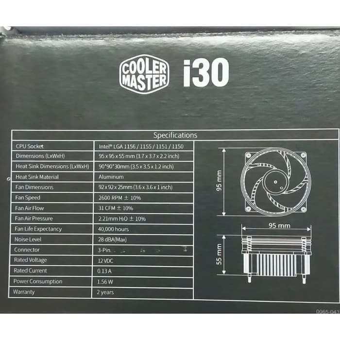 COOLER MASTER i30 CPU COOLER FAN PROCESSOR for INTEL i-30 i 30