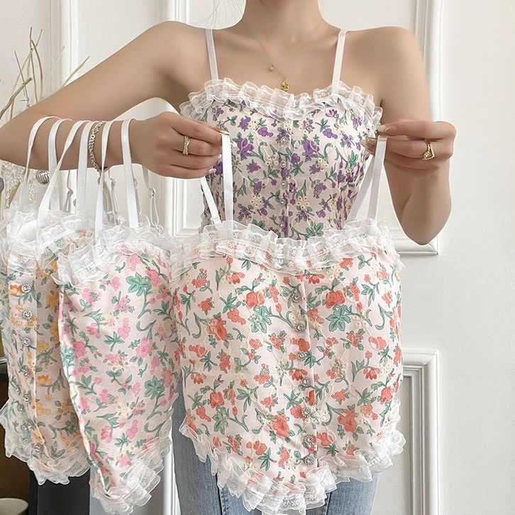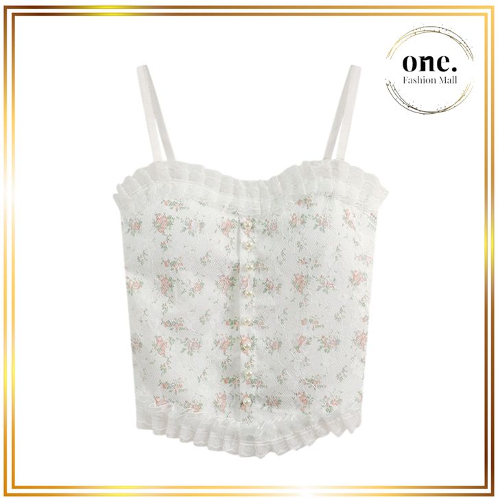 ONEFASHIONMALL BR099 Tanktop Kamisol Seksi Renda Bunga Korean Lace Pearl Floral Premium Pakaian