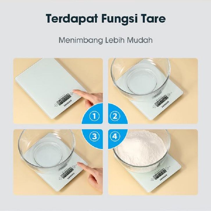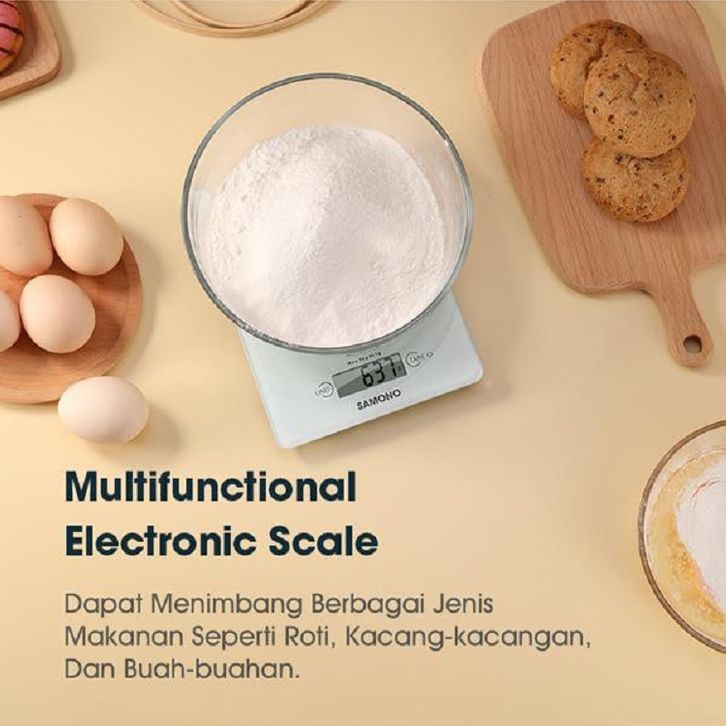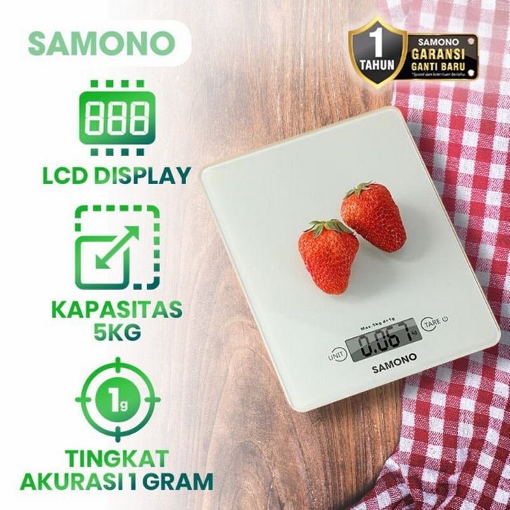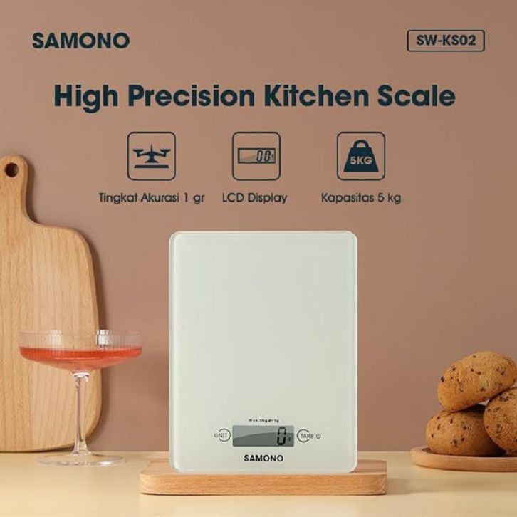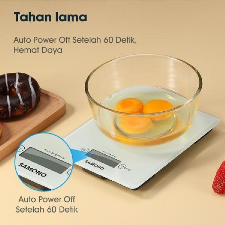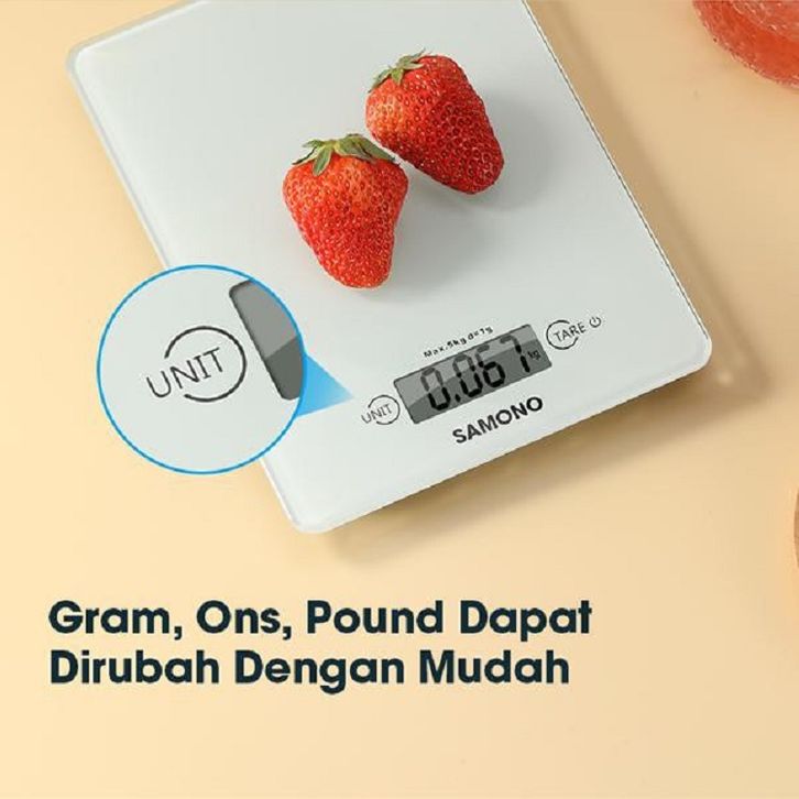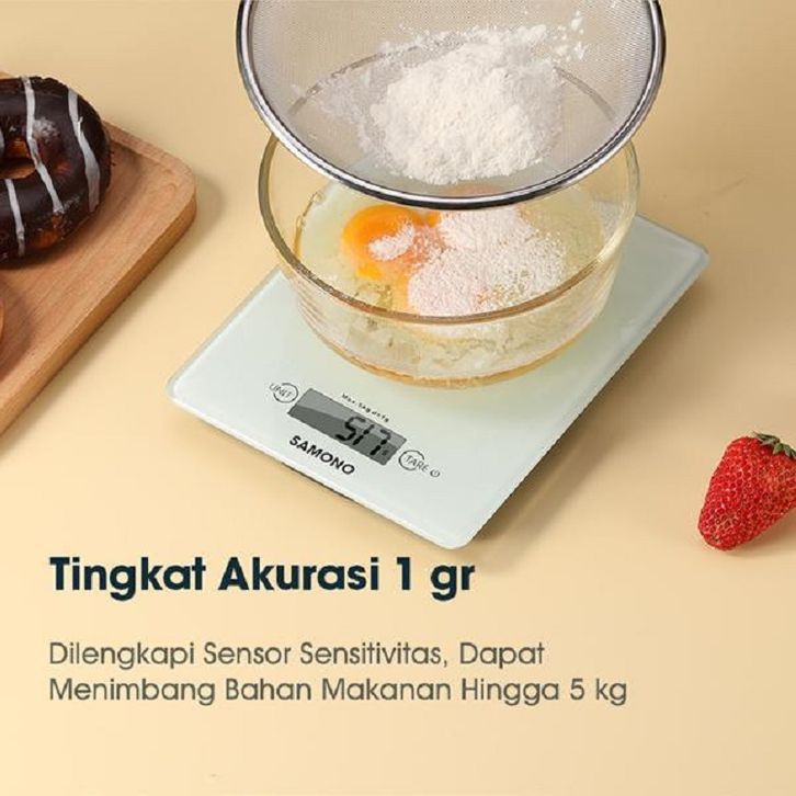 Samono 5KG Timbangan Elektrik Dapur Kaca Digital LCD Display Tingkat Akurasi 1 gram SW-KS02 Putih