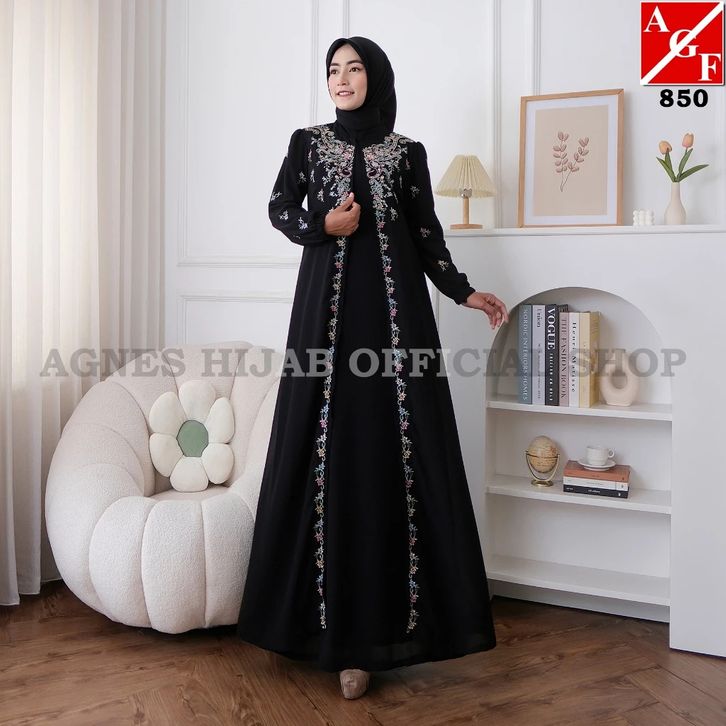 (PROMO Aiza Dress Gamis Putih Lebaran 2026 Terbaru Bordir Bunga Baju Muslim Wanita Abaya Hitam Gaun Pesta KondanganMewah