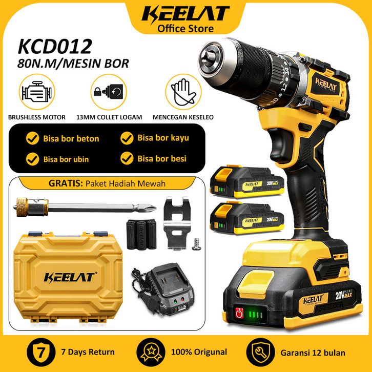 KEELAT-KCD012 New 80Nm Mesin Bor Mencegah Keseleo Bor Listrik 13mm Heavy -Duty Drill Cordless Drill Bor Kompatibel deng