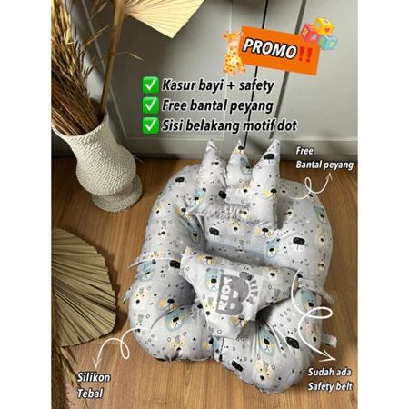 Kasur Bayi Sofa Bayi Dilengkapi Dengan Sabuk + Free Bantal Peyang CROWN Isian Empuk