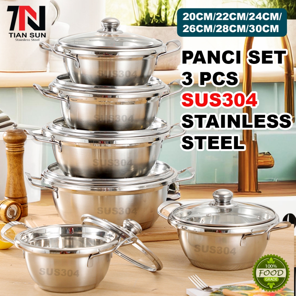 Tian Sun Panci Set Stainless Steel 3 PCs SUS304