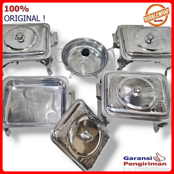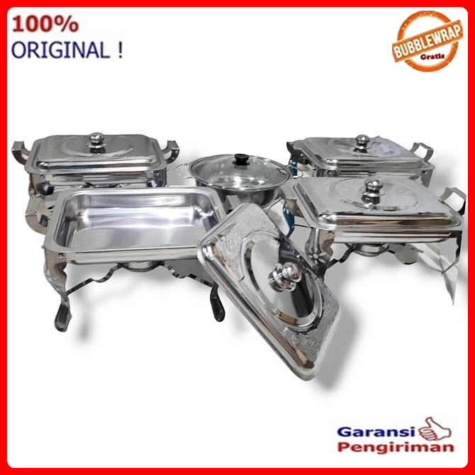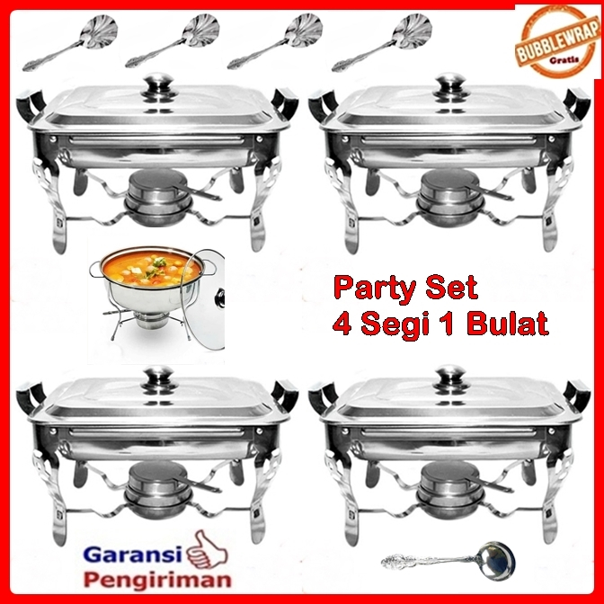 Party Set Prasmanan Stainless - Paket 4 Segi 1 Bulat - Paket Hajatan - Wadah Prasmanan - Tempat Prasmanan - Sgb12