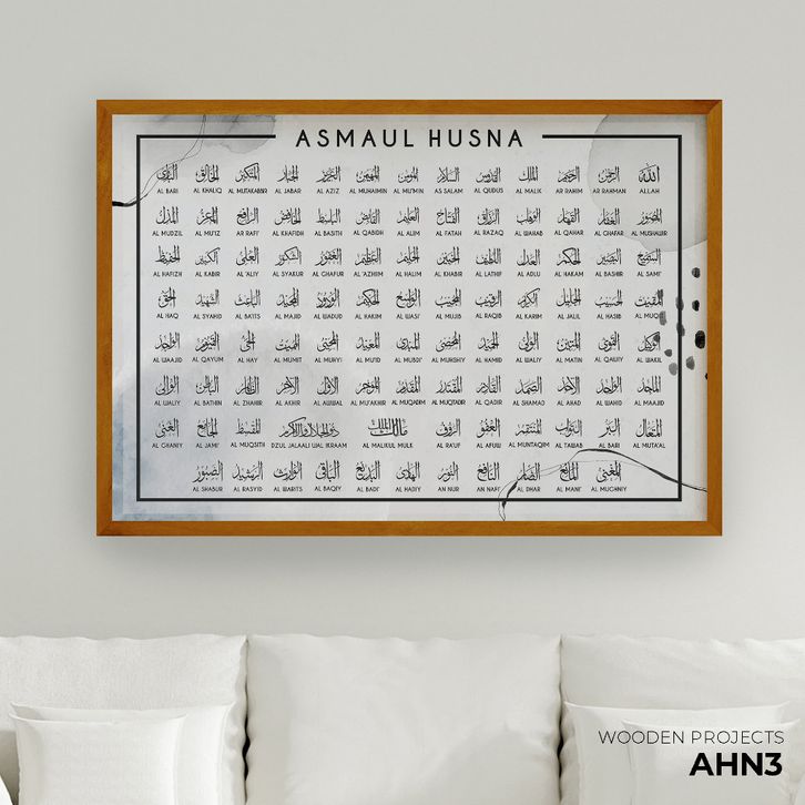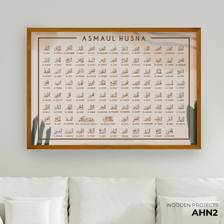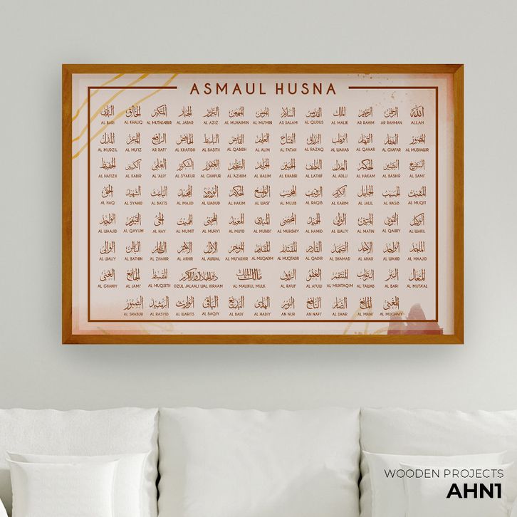 Wooden Projects Hiasan Dinding Frame Kayu Premium Wall Decor Kaligrafi Asmaul Husna Aesthetic - AHN