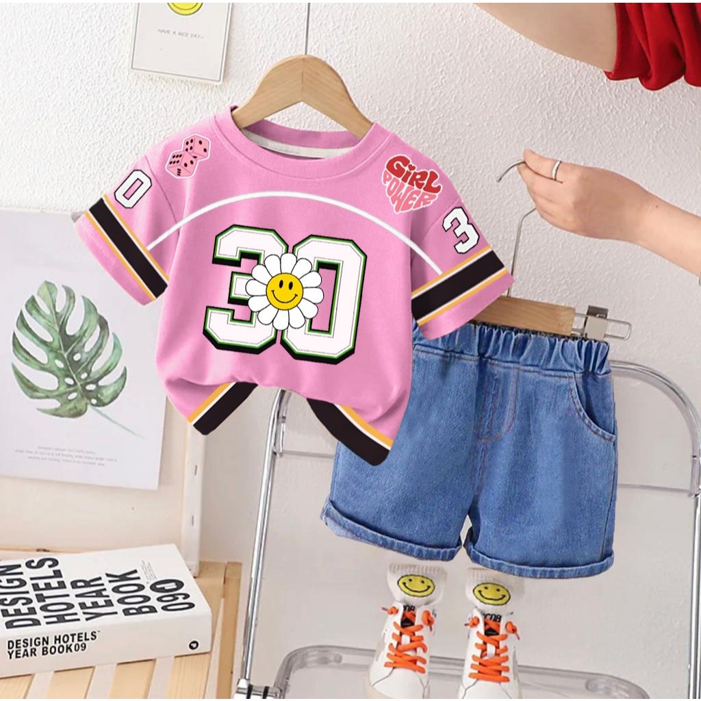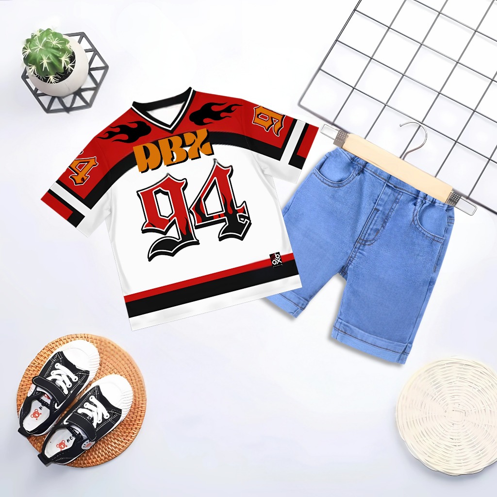 Setelan Jersey Anak Celana Denim Anak Usia 1-6 Tahun Kaos Jersey Basket Anak Laki-Laki Dan Perempuan Motif Viral Dan Kek