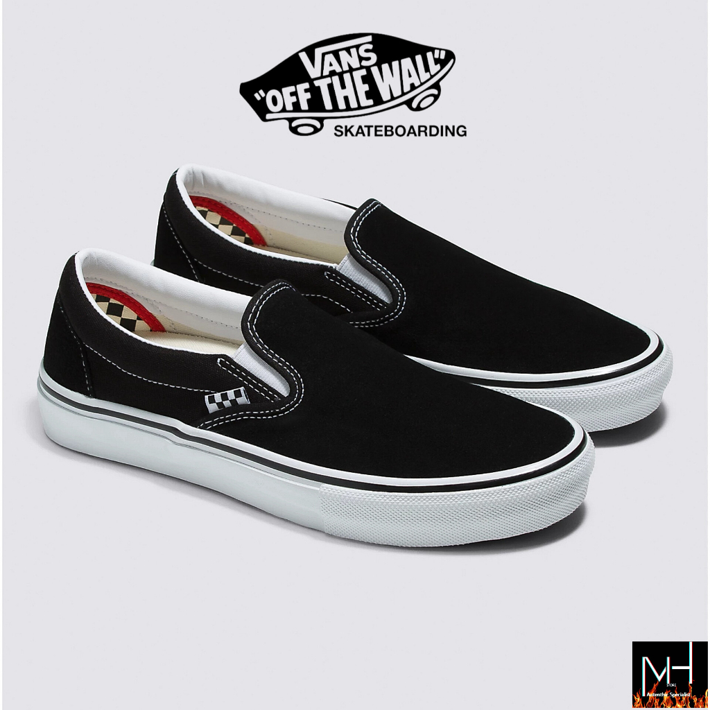SEPATU VANS ORI - VANS SLIP-ON SKATEBOARDING BLACK WHITE ORIGINAL 100%