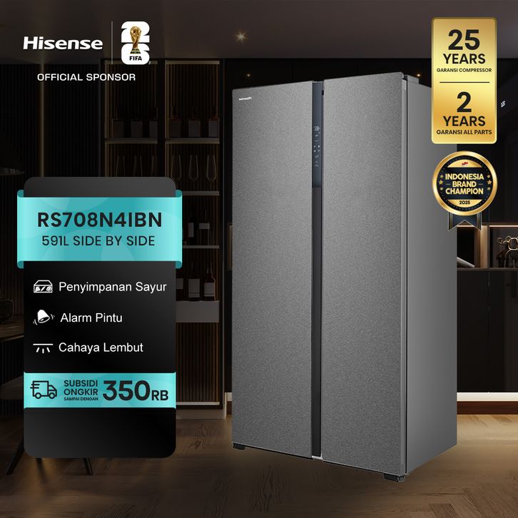 Hisense Kulkas - Side by Side - RS708N4IBN - Kapasitas 591L Refrigerator - Metal Doors No Frost + Multi Air Flow