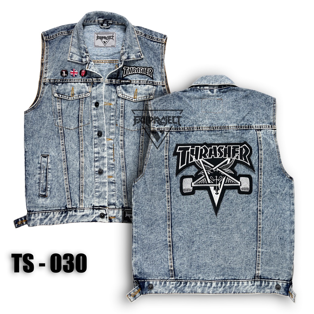 JAKET ROMPI JEANS PRIA motif band dan motor CUSTEM AKSESORIS SUDAH DI JAHIT DESAIN CASUAL