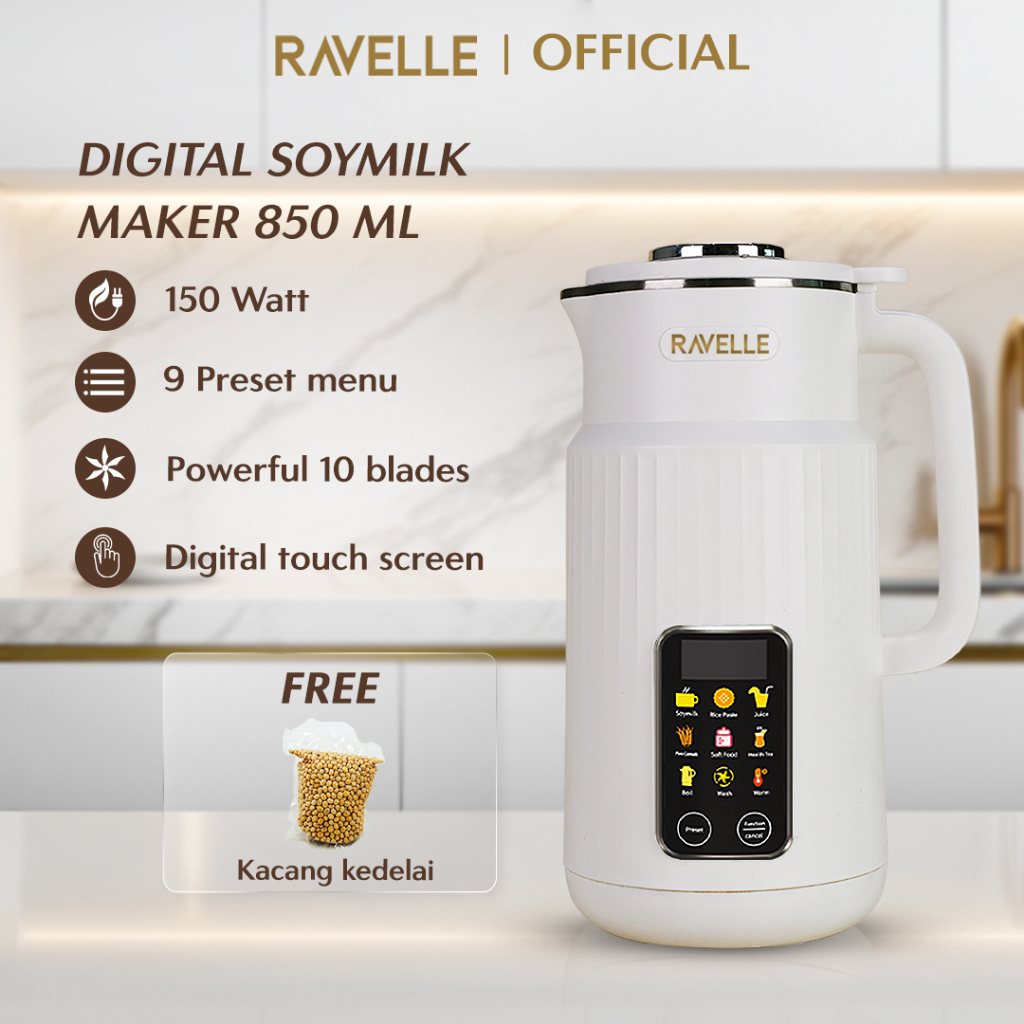 RAVELLE VANTE Digital Soymilk Maker 850ml 9 in 1 - Mesin Multifungsi Pembuat Susu Kacang Kedelai tanpa Disaring | Soy Mi
