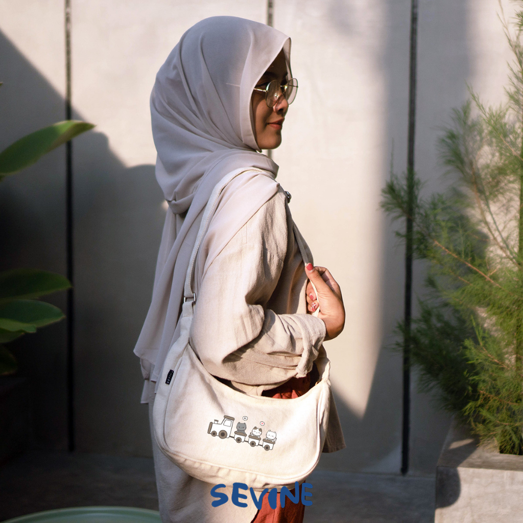 Sling Bag Kanvas Wanita Tas Selempang Cewek Shoulder Bag Hand Slingbag Resleting
