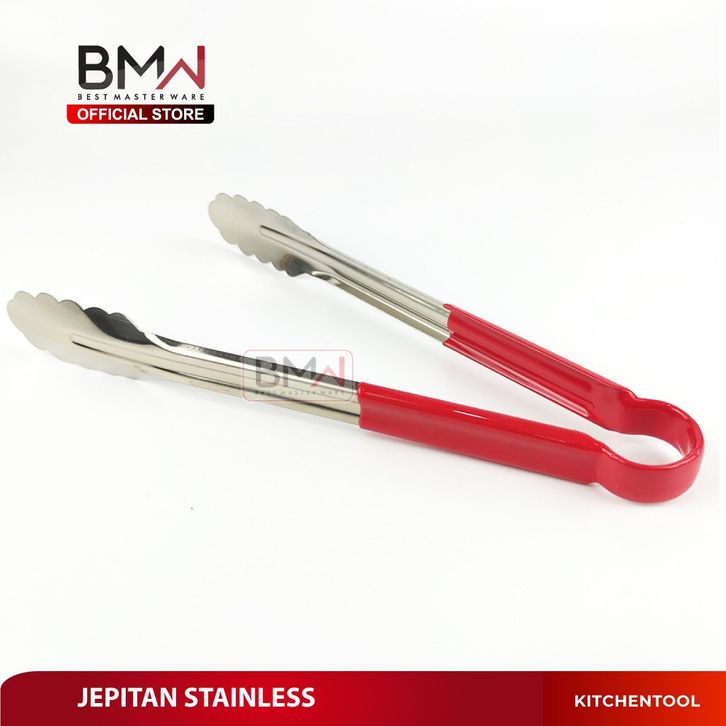 BMW Kitchen Ware - Jepitan Stainless Steel Capitan Makanan Kue Gorengan Roti Mie Sayur Gagang Merah Tebal