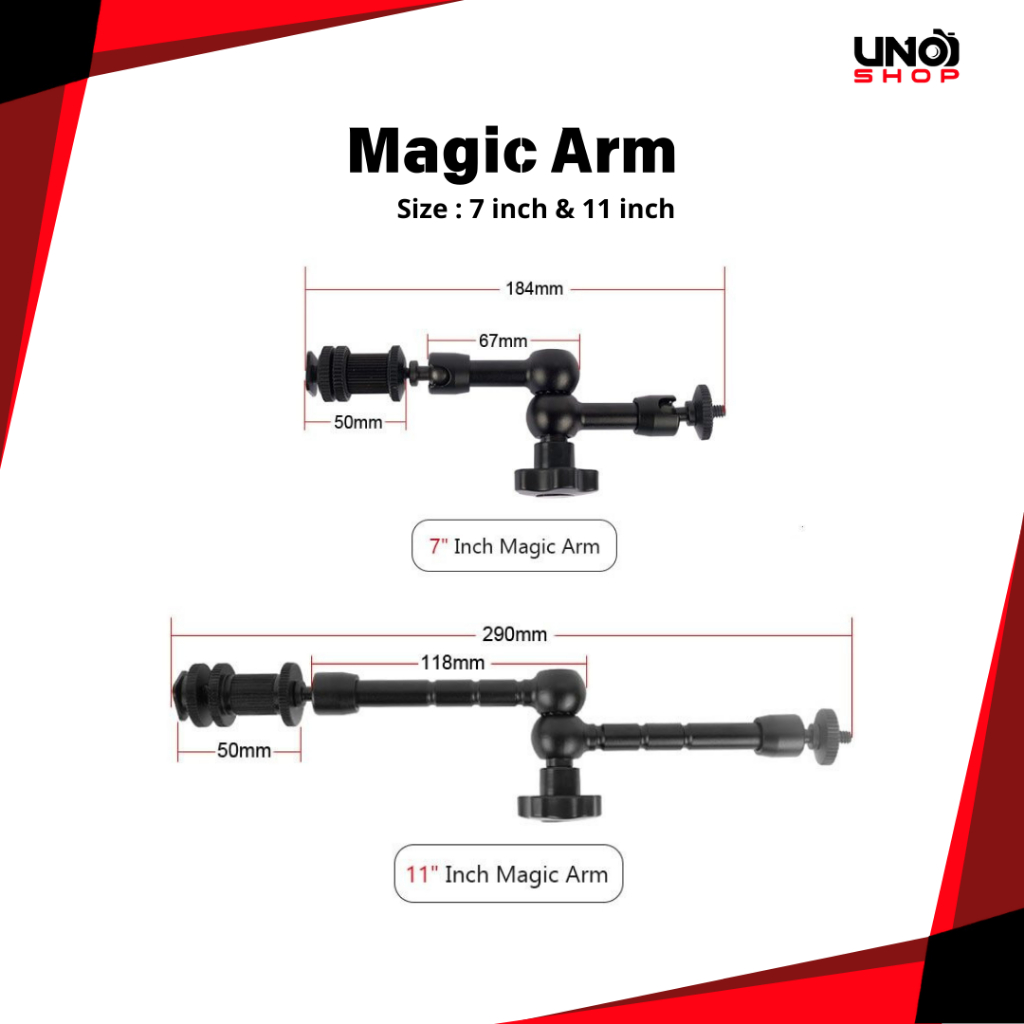 Magic Arm Articulating Friction 7 Inch & 11 Inch With Ball Head & Hot Shoe Adapter