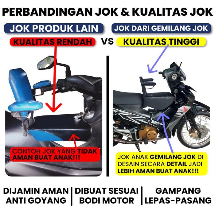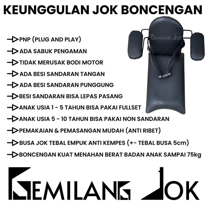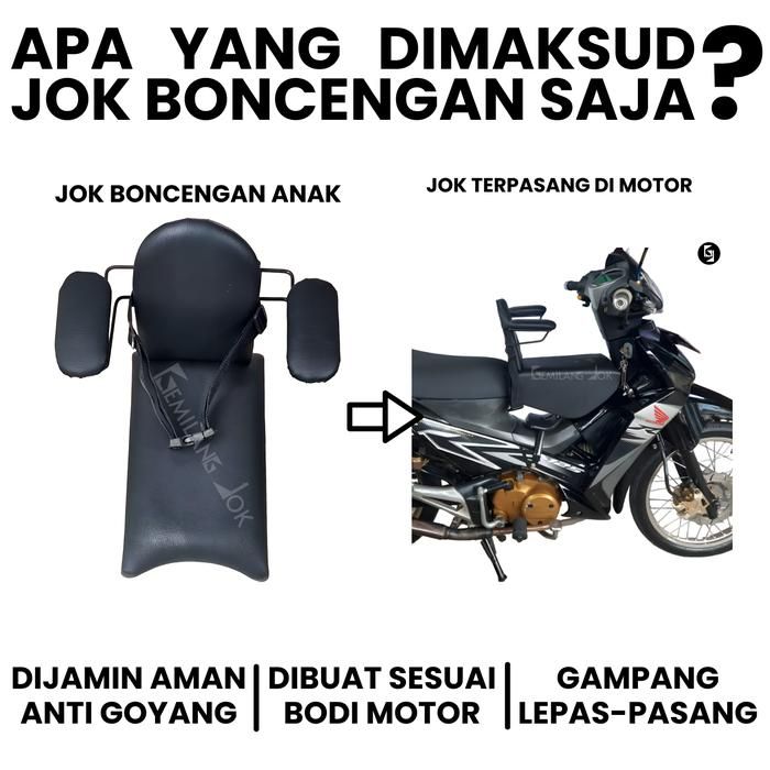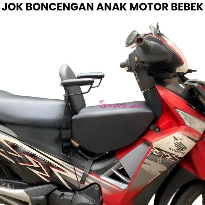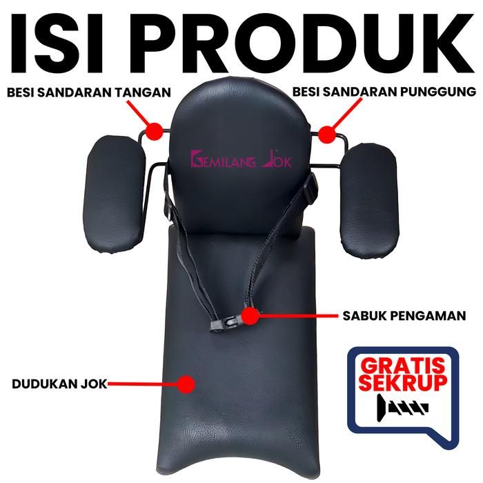 Jok Boncengan Jok Boncengan Anak Motor Bebek Dengan Besi Sandaran Tangan Dan Punggung Sabuk Pengaman Warna Hitam Polos