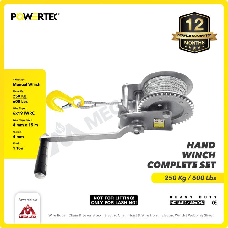 Alat Derek Hand Winch Katrol Manual 600lbs 250Kg x 15 M Galv