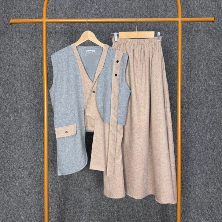 Termurah&Terbaru✅ (NEW READY) Vest One Set Rok /Setelan Rompi Wanita Kekinian /Setelan Rok Wanita Korean Style Vest Tanp