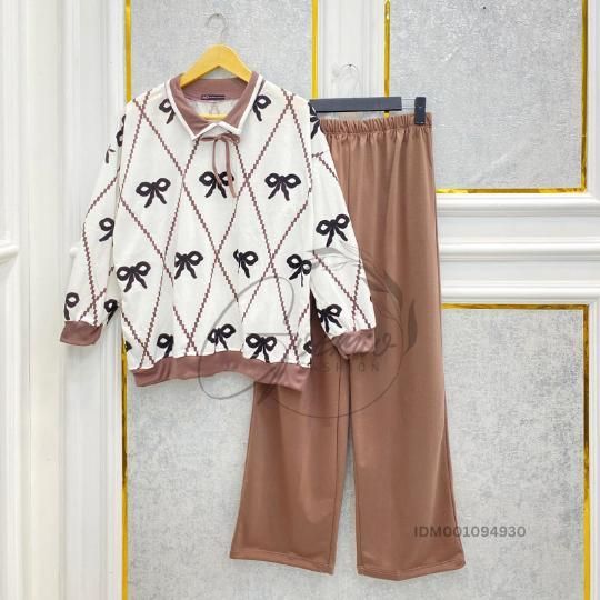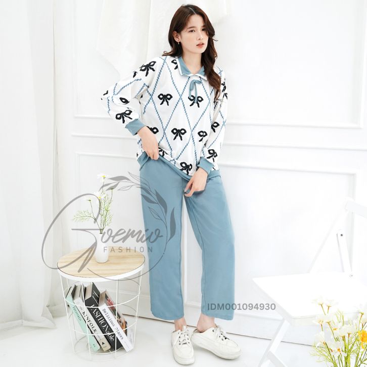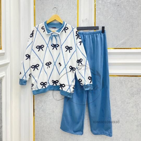 Termurah&Terbaru✅ Ilook | LD 120 One Set Kiyora Setelan Katun Mini Atasan Motif Lengan panjang Dan Celana Panjang Wanita