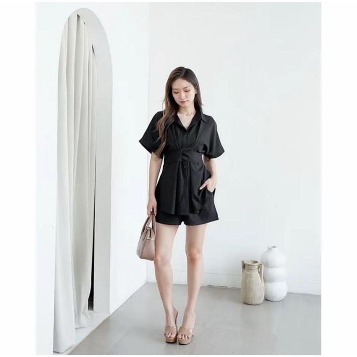 Termurah&Terbaru✅ Toply shop one set Bora atasan celana pendek / setelan dan tali pinggang korea style /one set krinkle