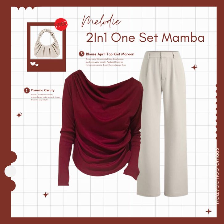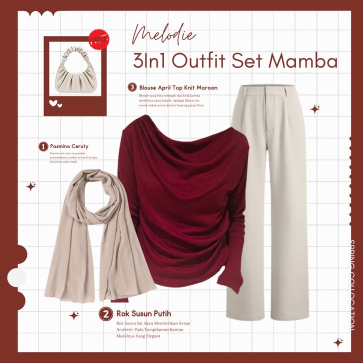 Termurah&Terbaru✅ 3In1 Setelan Wanita Kekinian | Pasmina, April Blouse, Celana Kulot | One Set OOTD Hijab Style - MO30